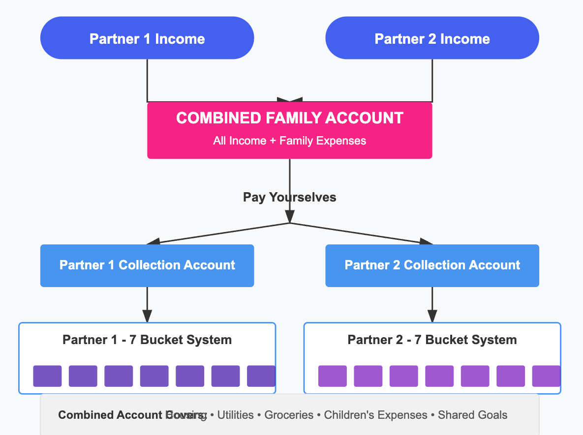 This system creates financial harmony for couples by combining resources for shared goals while preserving individual autonomy. It acknowledges that true partnership means rowing in the same direction toward common dreams while maintaining personal financial identity.