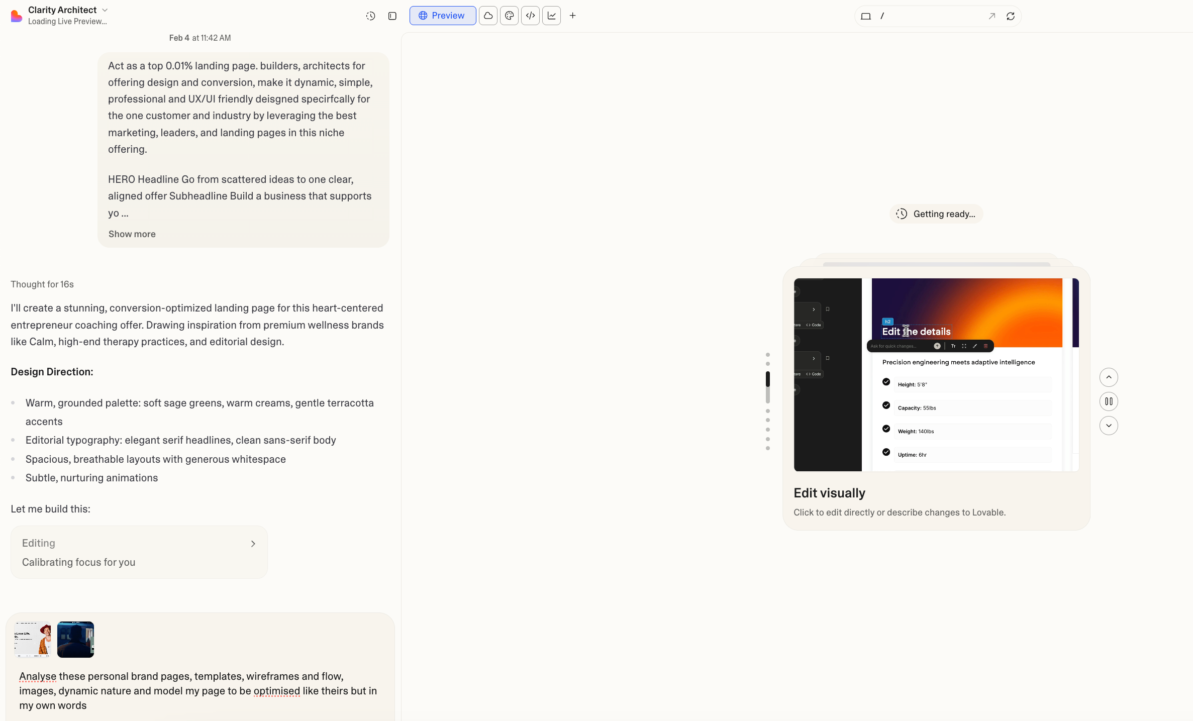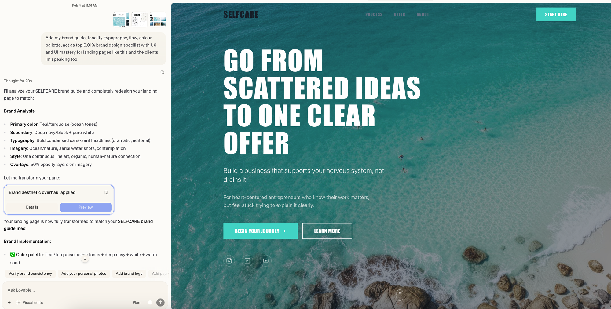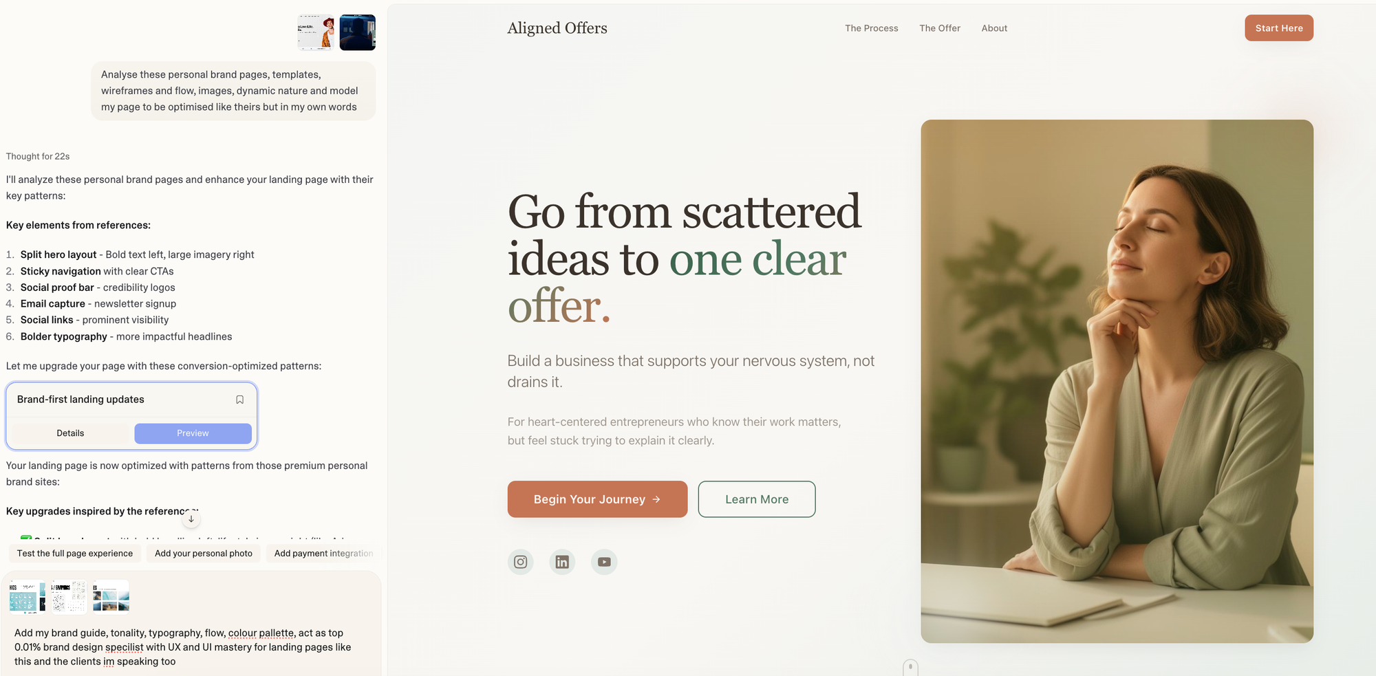 It reuses their words. It does not start from scratch unless asked. - A full landing page is created