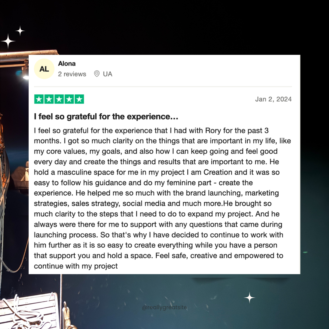 - Transformative experiences: Reviewers often describe significant positive changes in their lives after working with Rory.