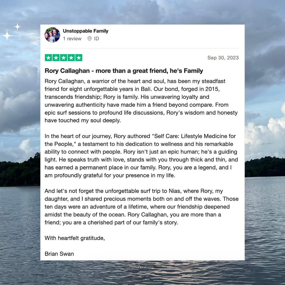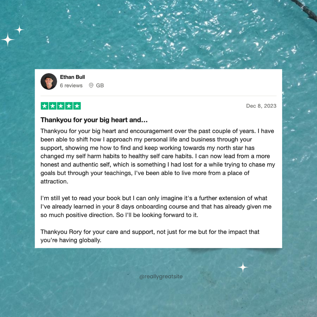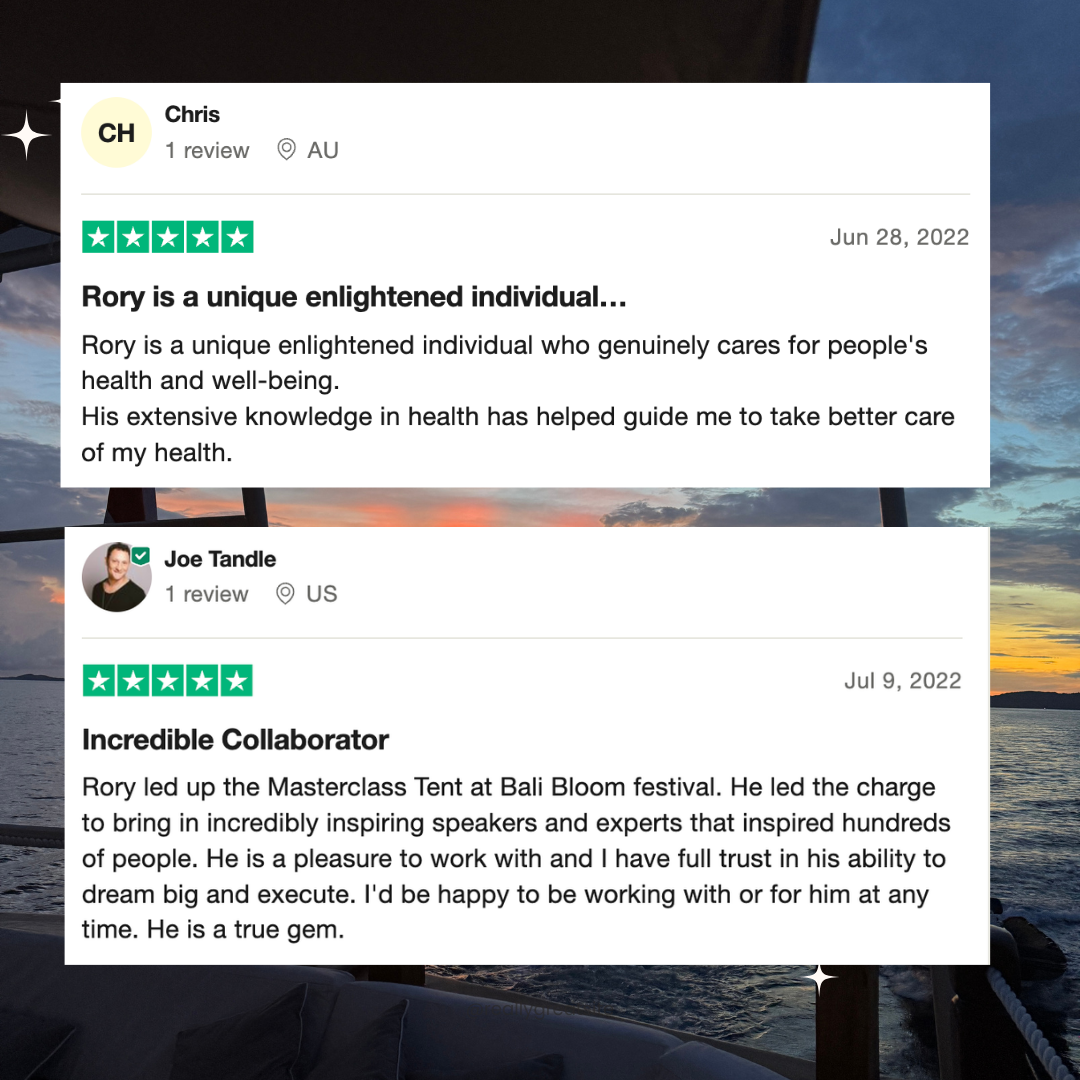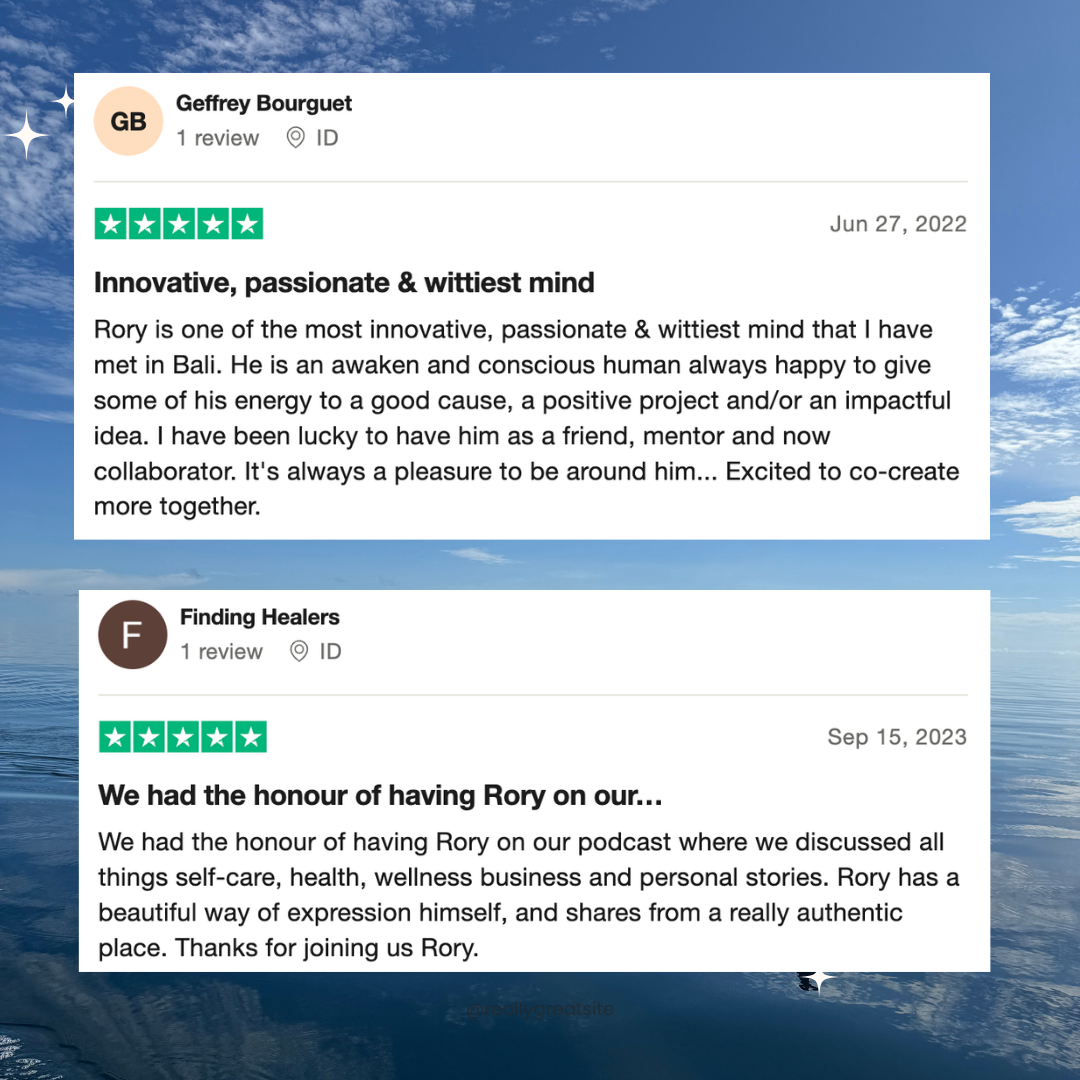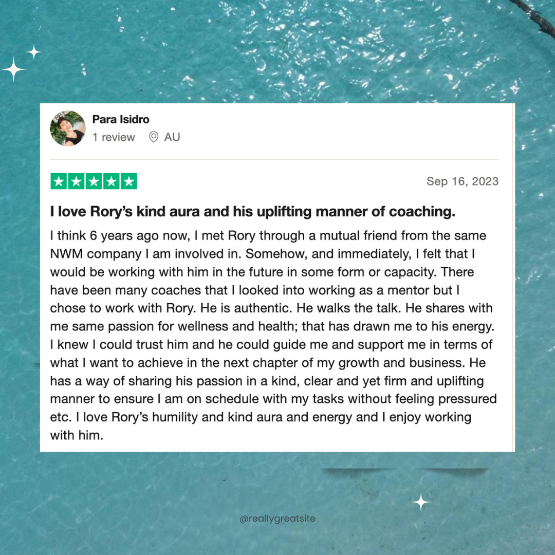 - Authenticity and genuine care: Reviewers consistently mention Rory's authenticity, describing him as genuine, caring, and passionate about helping others.