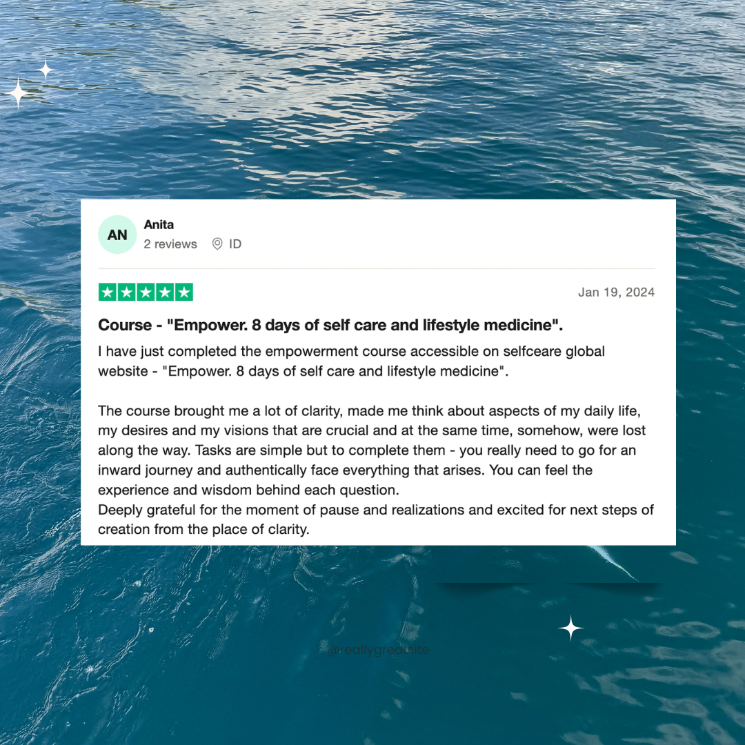 - Impactful courses: Several reviewers mention completing courses offered by selfcare.global, particularly the "Empower. 8 days of self care and lifestyle medicine" course. They describe these as insightful and transformative.