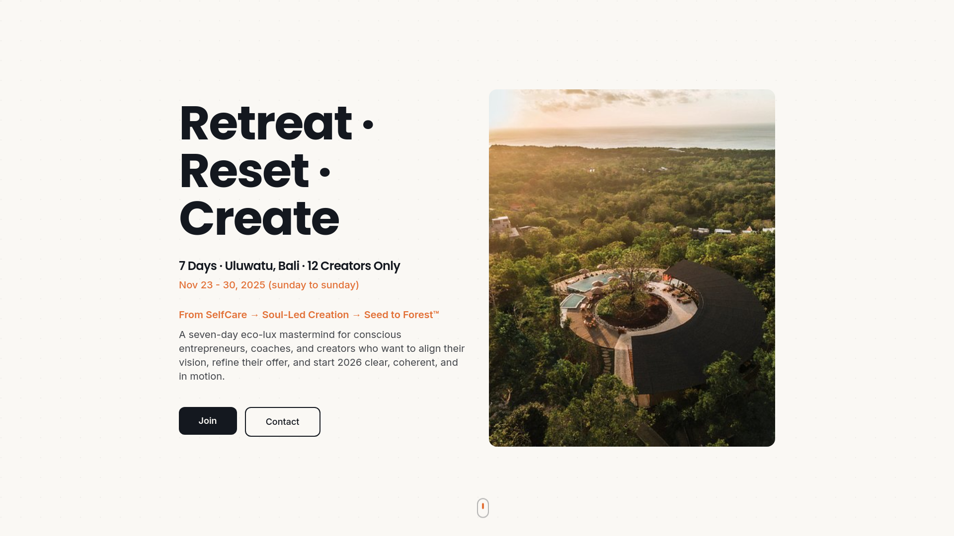 - Niche: Bali Consulting for ecoluxe venues, nature primary stakeholder, community is primary stakeholder, wellness by default, social impact