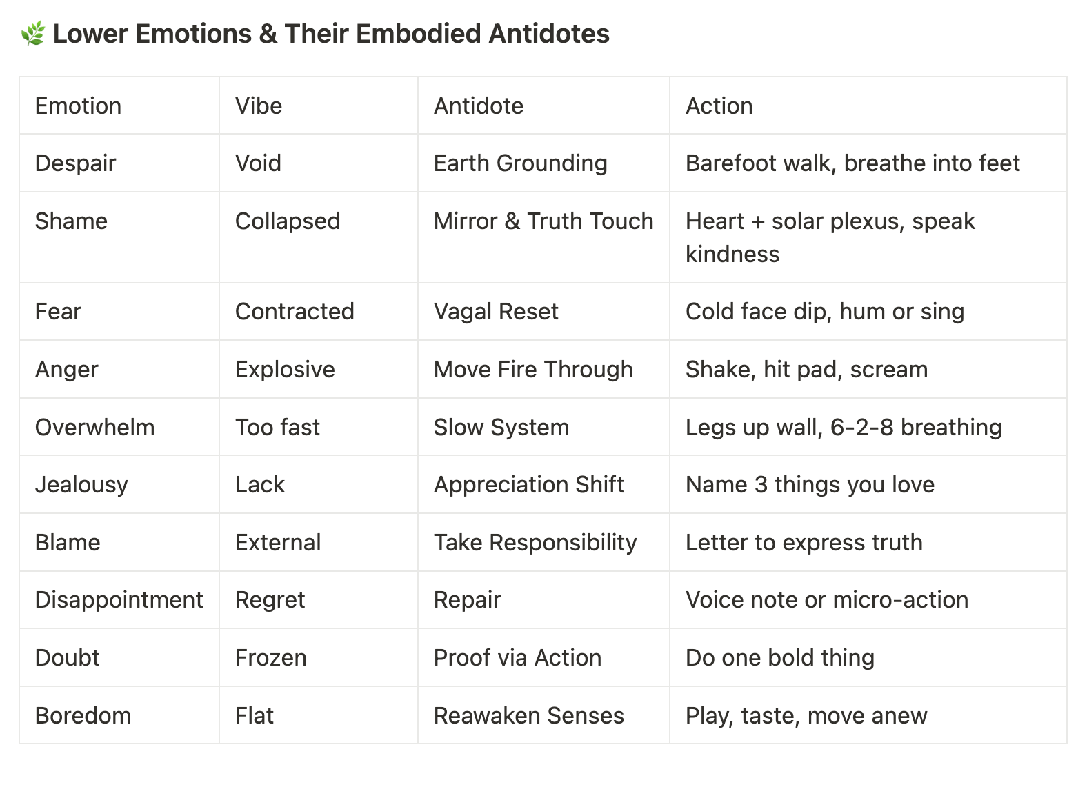 - Anchor in embodiment → Think, act, and feel differently to rewire the nervous system